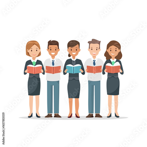 Obraz premium Group of Smiling People Reading Books Together Indoor Illustration Learning...