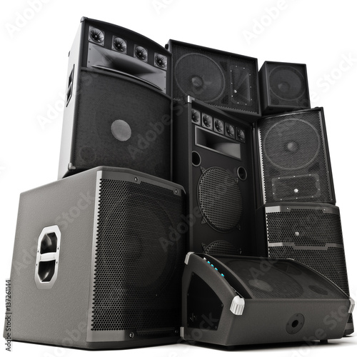 © Digital Storm, Obraz premium Group of speakers ,Powerful ,loud or abused concept 3d rendering illustration