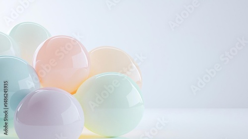 © Vitalii, Fototapeta premium Group of spherical objects arranged in a scattered manner on a white surface.
