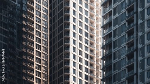 Obraz premium Group of tall buildings with different colors in an urban complex during...