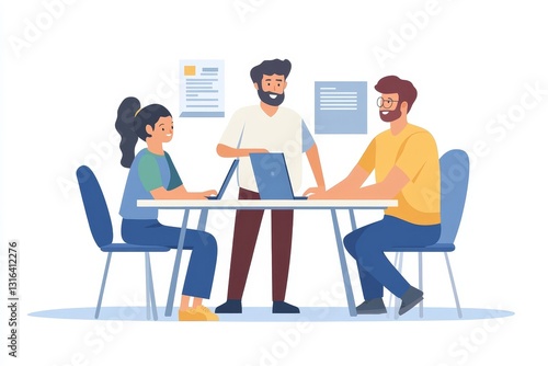© Lens Haven, Obraz premium Group of team workers and programmers starting a new project.Senior programmer giving help to beginner