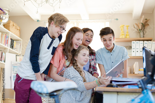 © KOTO, Obraz premium Group of teenagers taking selfie with digital tablet