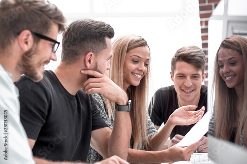 © ASDF, Fototapeta premium Group of three people analyze data on desktop computer.
