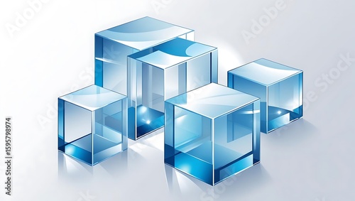 Fototapeta premium Group of transparent blue cubes with light reflections