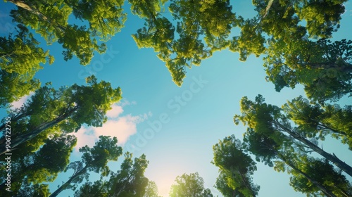 © Marco, Obraz premium group of trees in a forest forming a heart in the background of the blue sky