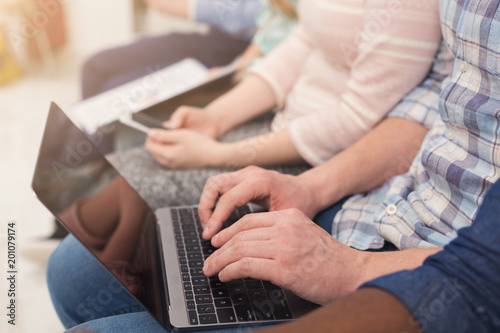 Fototapeta premium Group of unrecognizable people using gadgets