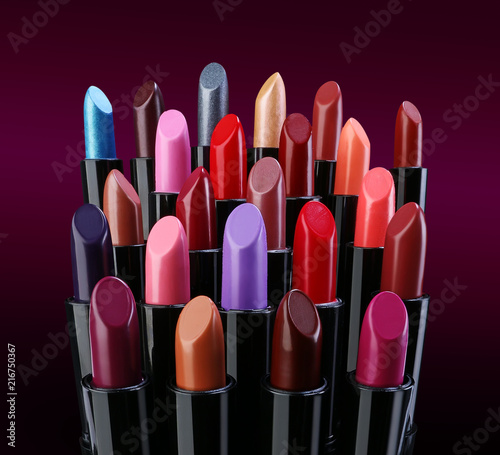 © Julián Rovagnati, Obraz premium Group of various fashion lipsticks over dark background