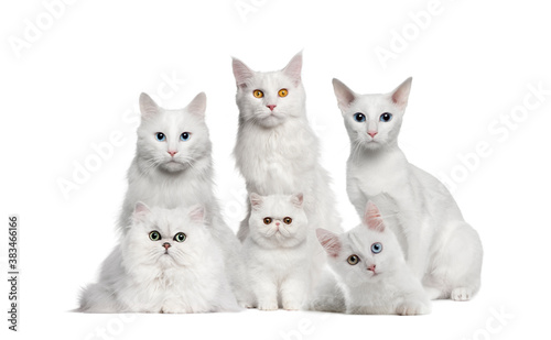 © Eric Isselée, Fototapeta premium Group of white cats isolated on white