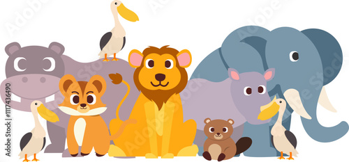 Naklejka premium Group Of Wild Animals Illustration