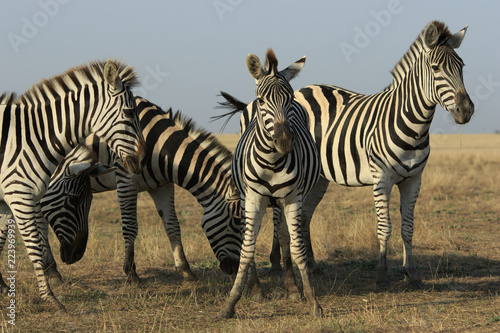 © Vitaly Zubrytsky, Fototapeta premium Group of wild zebras stands together in a steppe