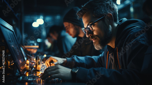 © AS Photo Family, Obraz premium Group of young men working on a computer at night.