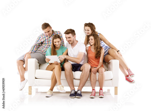 © Halfpoint, Obraz premium Group of young people on sofa with tablet