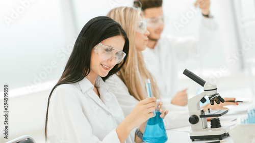 Fototapeta premium group of young scientists conduct research in the laboratory .