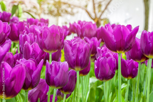 © SINSU1980, Fototapeta premium Group purple tulips. Spring landscape.selective focus.