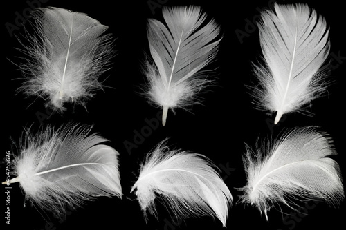 © nadtytok28, Obraz premium Group white feather isolated on black background