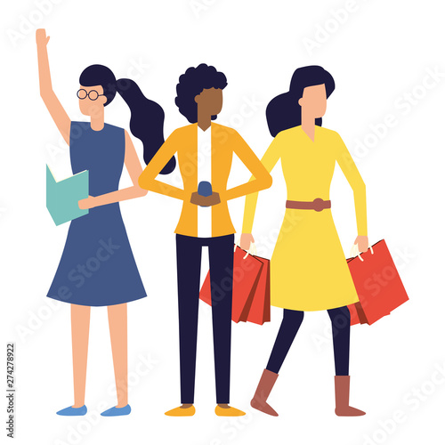 © Gstudio, Naklejka premium group women with smartphone paper and shopping bag