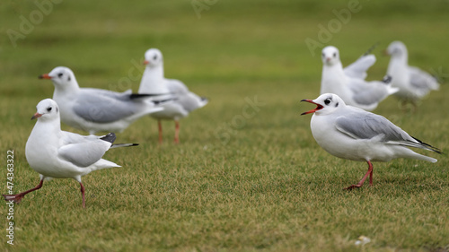 Fototapeta premium Groupe de mouettes sur une pelouse