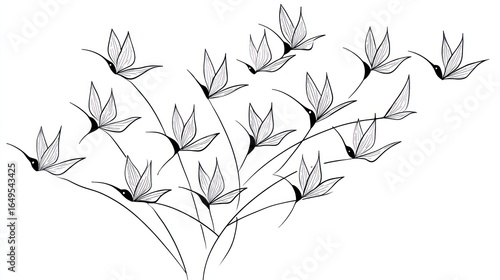 © falikh, Naklejka premium Grouping of floral blossom sketches in a light gray palette