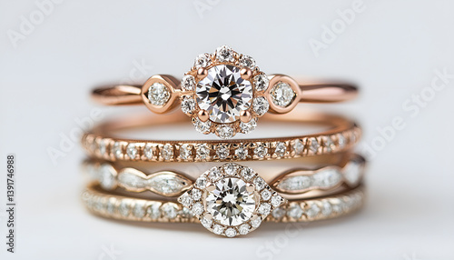 © Oleksiy, Obraz premium grouping stack of diamond wedding engagement rings