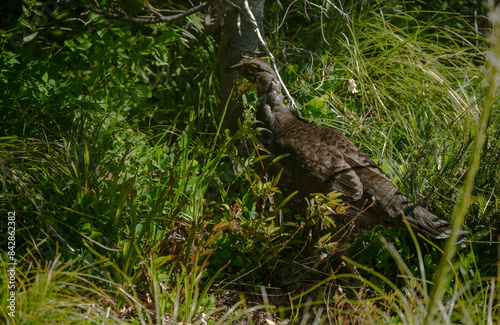 © kellyvandellen, Fototapeta premium Grouse Sneaks Through Brush in Mount Rainier Forest