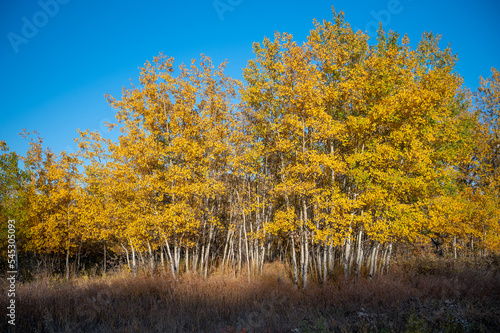 Fototapeta premium Grove of yellow aspen trees, Fish Creek Provincial Park, Calgary, Alberta