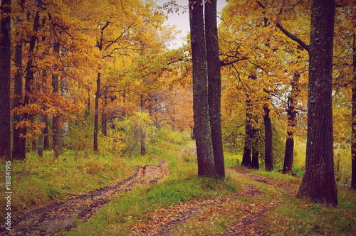 Obraz premium Grove. solitary autumn in an oak grove after a rain