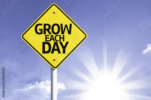 © gustavofrazao, Naklejka premium Grow Each Day road sign with sun background