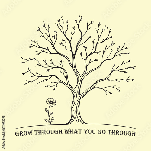 Obraz premium Grow Through What You Go Through Inspirational Tree T-Shirt Design