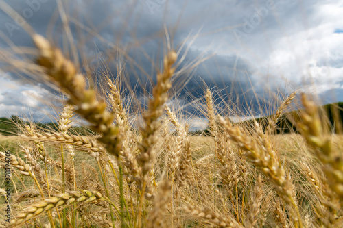 Fototapeta premium Growing cereals against cloudy sky.