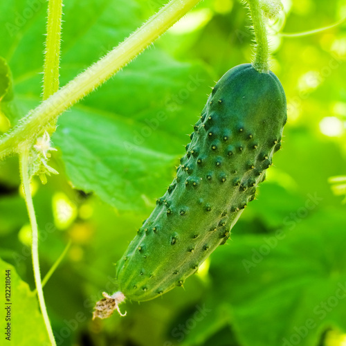 © shangarey, Naklejka premium growing cucumbers in the garden