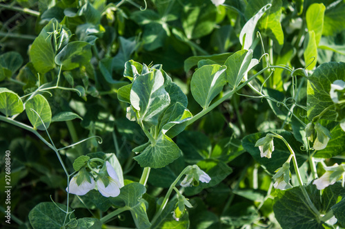 Fototapeta premium Growing green peas in the garden
