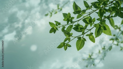 © NeuralNiche, Obraz premium Growing Mint Plant as Background