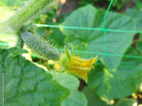 © Alla, Naklejka premium Growing origkas in open ground, fresh fruit harvest in natural conditions close-up
