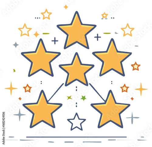 © Олександр Романюк, Fototapeta premium Growing Star Chart Illustration with Connected Five Point Elements for Progress and Achievement