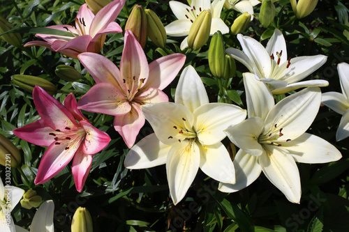 © Alex Coan, Obraz premium Growing white and pink lilies