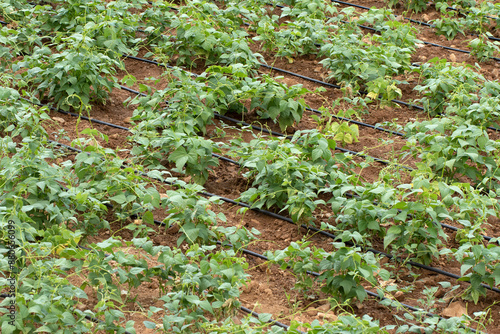 © cilicia, Obraz premium Growing white beans with drip irrigation in a field