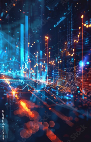 © Artlana, Fototapeta premium Growth diagram chart, trading, sales, business grow concept. Futuristic technological design