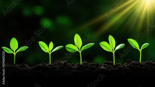 Naklejka premium Growth, Nature's Progression: Seedlings Emerging in Sunlight