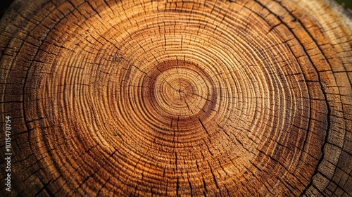 Naklejka premium Growth rings on tree trunk. Closeup trunk texture