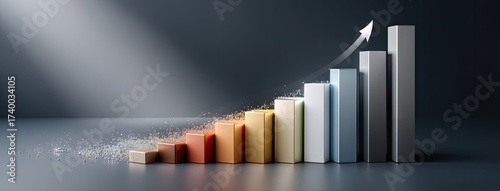 © pvl0707, Obraz premium Growth trend visualized with colorful bars indicating increasing metrics from low to high in a business or financial context