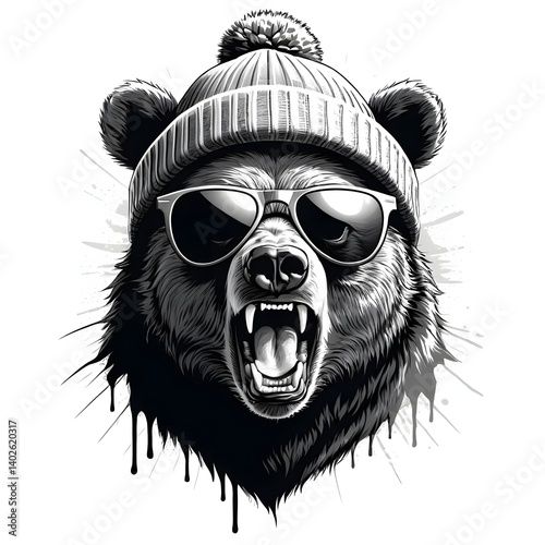 © Liang, Obraz premium Grumpy Bear in Winter Hat and Sunglasses