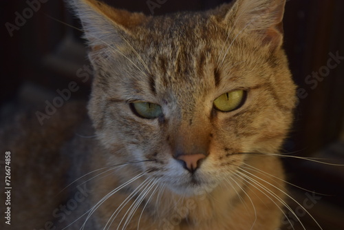 © Katarina, Obraz premium Grumpy tabby / grey cat close up