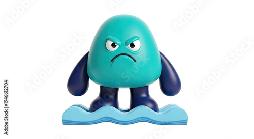 © Adinda, Obraz premium Grumpy Teal Blob Monster Standing in Blue Waves