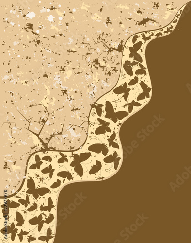 © Forewer, Fototapeta premium Grunge background with tropical butterflies