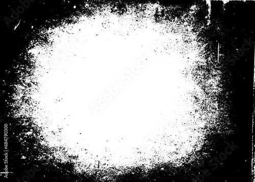 Fototapeta premium Grunge border vector texture background. Abstract frame overlay. Dirty and damaged backdrop. Vector graphic illustration with transparent white. EPS10.