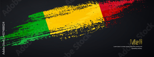 © Akshay, Obraz premium Grunge brush of Mali flag on shiny black background. Creative glitter sparkle brush paint vector illustration