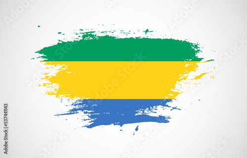 Obraz premium Grunge brush stroke with the national flag of Gabon on a white isolated background