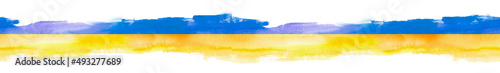 © Маргарита Шевчишена, Obraz premium Grunge brush stroke with Ukraine national flag. Watercolor painting flag of Ukraine. Symbol, poster, banner of the national flag. Style watercolor drawing. Seamless