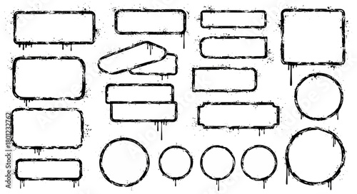 © irfan, Obraz premium Grunge Drip Frames Black and White Text Boxes & Circular Accents for Unique Designs