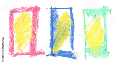 Fototapeta premium grunge hand draw chalk, scribble colorful squares, isolated on white,...